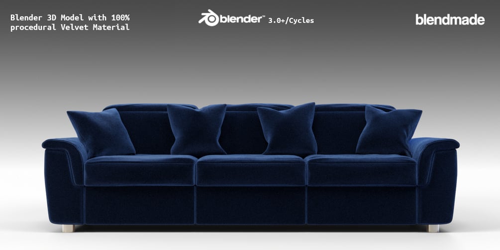 Blender 3D model of a sofa with procedural velvet material for Cycles.